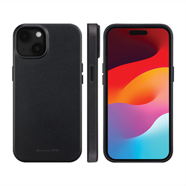 dbramante1928 - Roskilde MagSafe Case Ægte Læder Black - iPhone 13, 14, 15 & 16E, set foran og bagfra