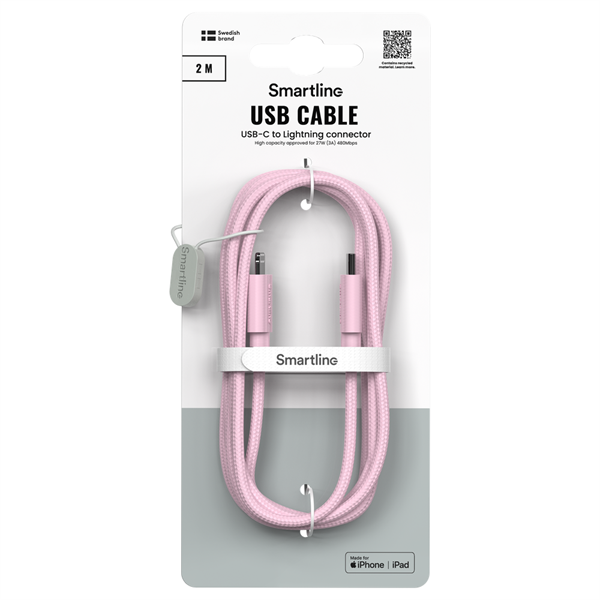 Smartline - USB-C til Lightning 2m Braidy - Pink