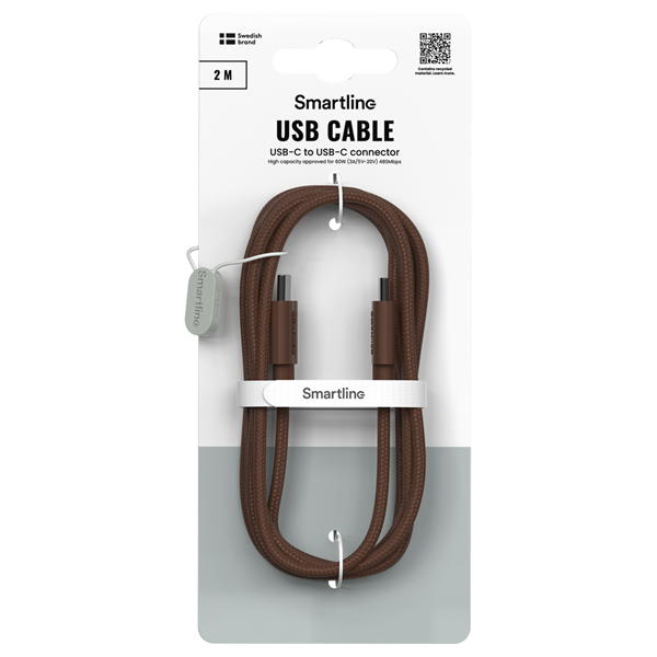 Smartline - USB-C til USB-C 2m Braidy - Mørkebrun
